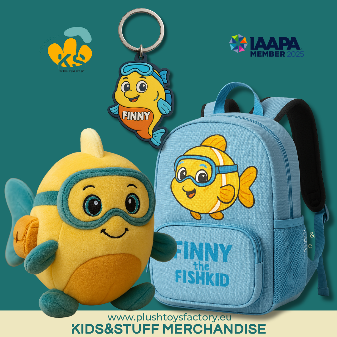 Bright and fun custom backpack and keychain set featuring Finny the Fishkid! Perfect for children’s retail, aquariums, and branded giveaways. Safe, durable, and GPSR-compliant.